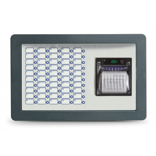 Echipat cu 50 de LED-uri configurabile în trei culori (verde, galben, roșu) și o imprimantă termică pe o rola de 80 mm.