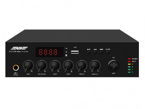 PA150U este un mini amplificator multifuncțional cu Bluetooth, USB și radio FM încorporat. Putere de ieșire 500W în moduri 70V/100V sau cu conexiune cu impedanță scăzută de 4-16 Ohmi. Intrări: 3 intrări MIC, 1 intrare EMC, 2 intrări linie, 1 ieșire linie. Controlul master al volumului, controlul volumului microfonului individual și AUX, control al volumului frecvenței înalte și joase. Setul include o telecomandă pentru o utilizare convenabilă. Amplificatorul este potrivit pentru utilizarea în hale mari, parcări, centre comerciale etc. Gamă de frecvență - MIC: 120Hz~12kHz. AUX: 80Hz~15kHz. Când utilizați funcția de prioritate, prioritatea este MUTE>EMC=Alarm=Chime>MIC1>other. Dimensiuni: 430×380×88mm. Protecție împotriva scurtcircuitului, suprasarcinii și temperaturii ridicate. Alimentare AC220V. 1 an garantie!