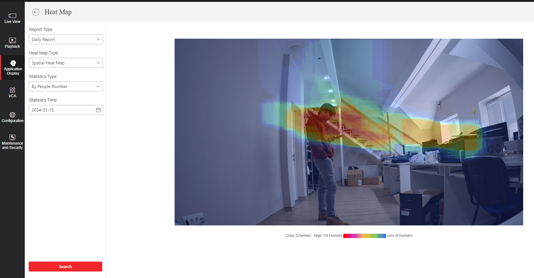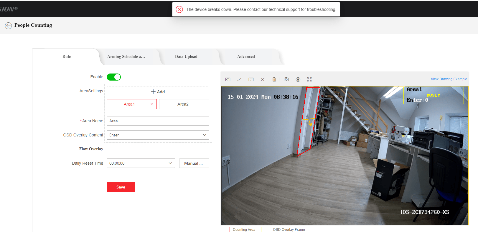 Camera utilizează tehnologia Crossline People Counting, care permite numărarea persoanelor ce trec o linie predefinită, fiind utilă la intrări și ieșiri.