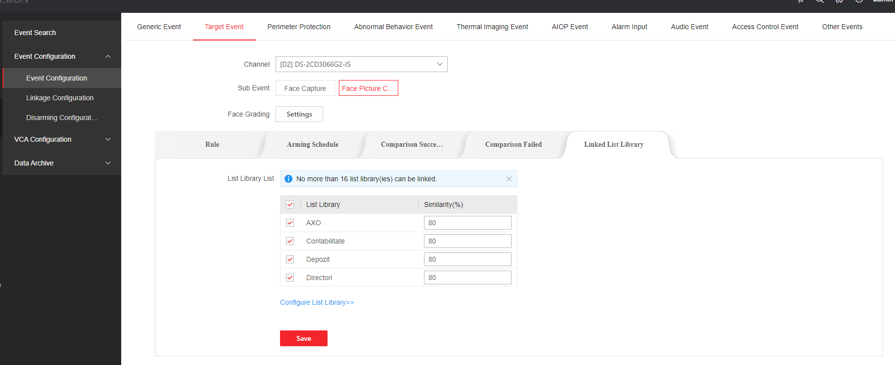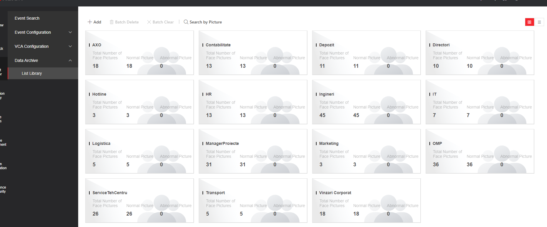 Возможность создания до 16 библиотек, что позволяет группировать лица, например, по категориям: сотрудники, посетители или «чёрный список».