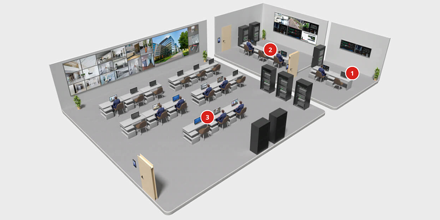 Camerele IT mici ajung rapid la limitele de spațiu, personal și buget, ceea ce face importantă furnizarea de soluții eficiente de afișare pentru managementul securității. Soluțiile trebuie să asigure o gestionare intuitivă, afișaje informative pe un număr limitat de ecrane și combinații simple de produse.