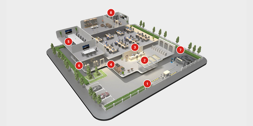 Soluția pentru clădirile de birouri oferă combinații moderne și inteligente de produse, pe o platformă ușor de gestionat, creând un mediu de lucru mai sigur și mai comod pentru personal și vizitatori, în același timp simplificând gestionarea zilnică pentru utilizatorii sistemului și operatori. Întreaga concepție subliniază valoarea obiectivelor, adăugând securitate, eficiență și o experiență îmbunătățită.